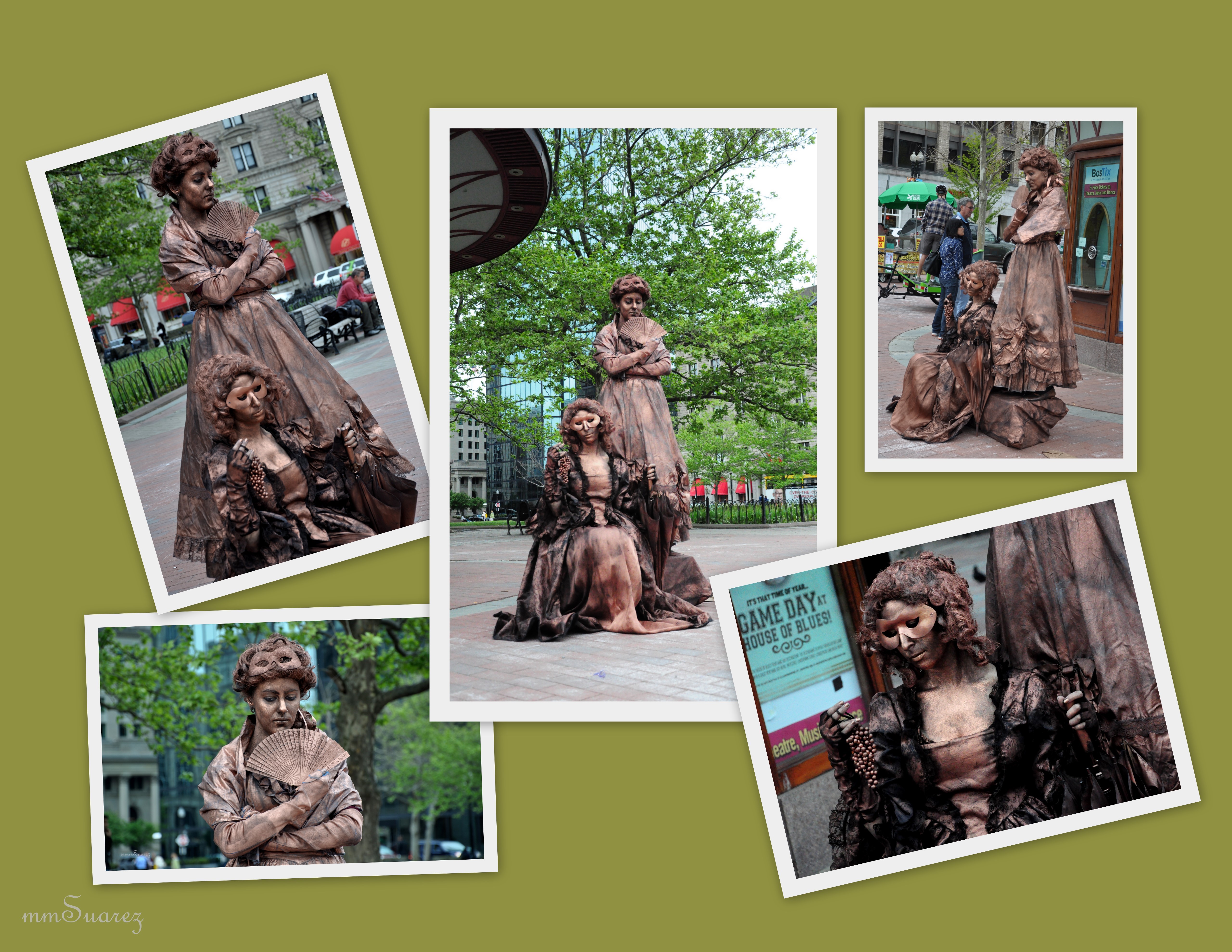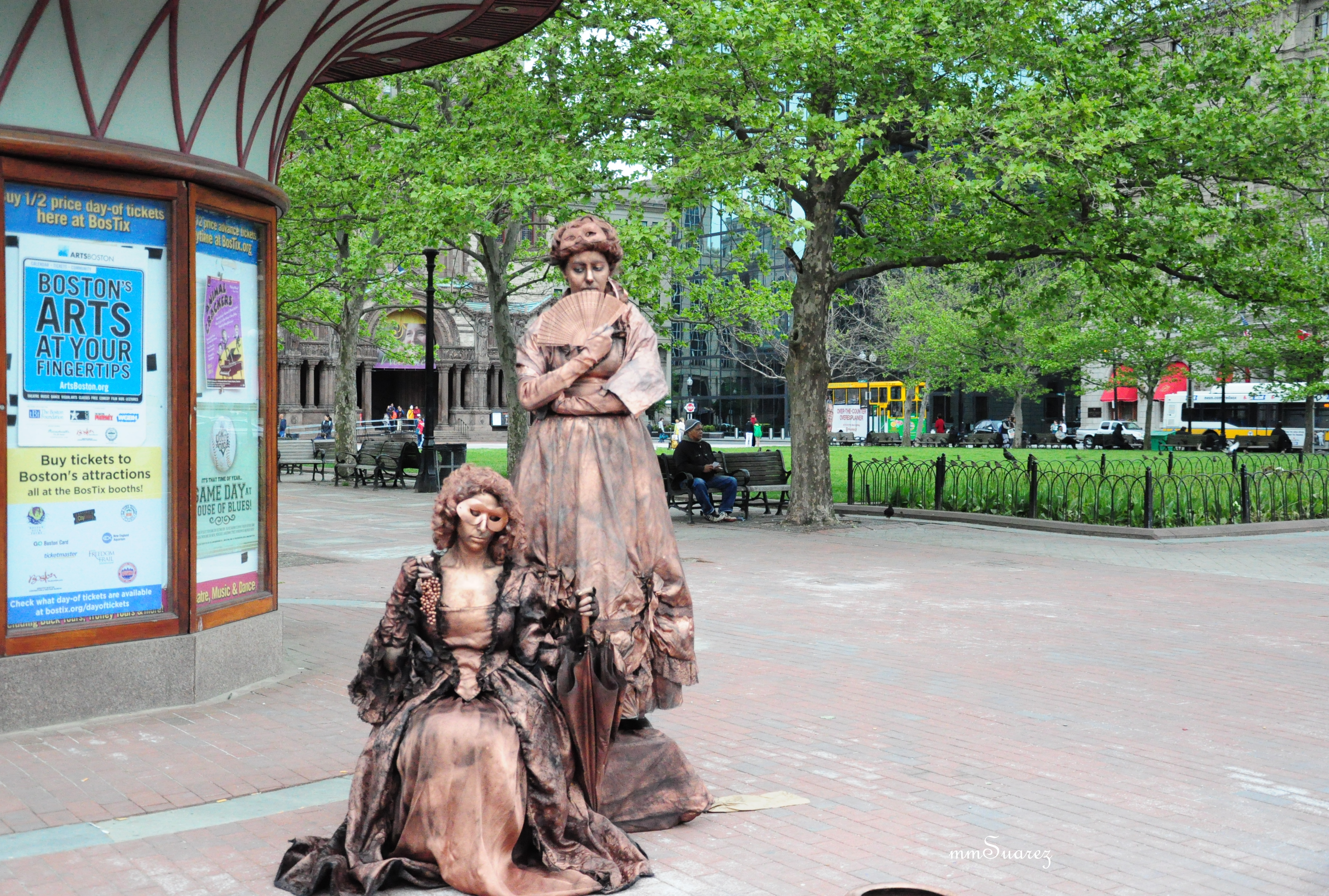 As I walked around the Copley square in Boston, I spotted two ladies, tourist gathered around and take pictures. I patiently waited for my turn to take pictures, enjoying the scenery and admiringly looking at these two. A young girl, place a dollar in the basket and suddenly i saw a synchronized movement of thank you gesture from this unknown ladies. I almost lost my grip on the camera when i saw them move. ha ha ha ha got you! they are super real people. How can they stand still at that very moment without a blink!